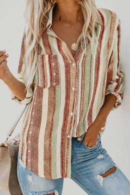 Striped Collared Neck Long Sleeve Shirt